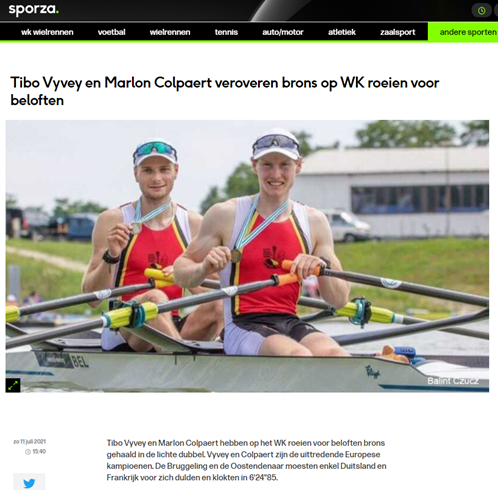 PERSARTIKEL: "Tibo Vyvey en Marlon Colpaert veroveren brons op WK roeien voor beloften"